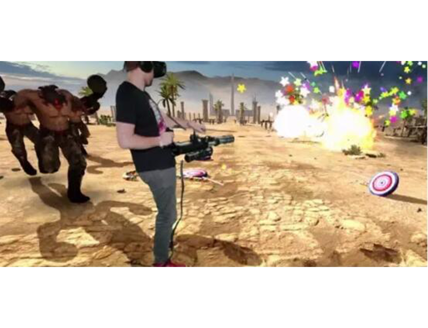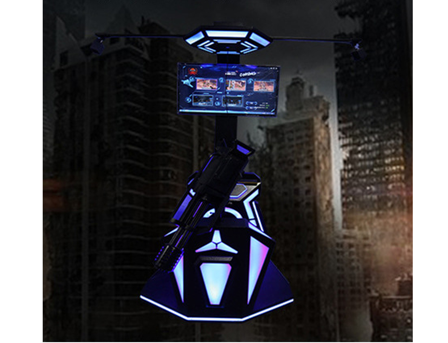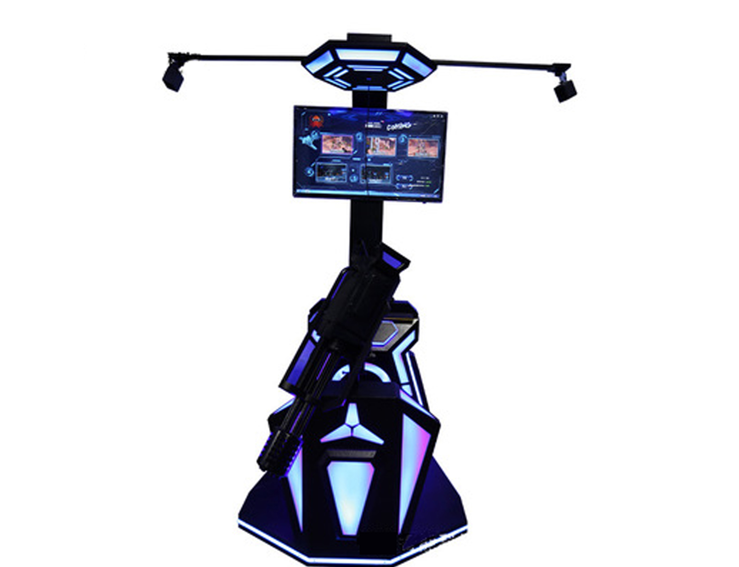 重型机枪VR外设,制作精良的VR游戏内容,场景众多、关卡层层叠进、游戏难度、趣味性逐步加大、沉 浸感也逐步加强;数千子弹连发,还可投射炸弹、让你叱咤战场、酣畅淋漓!