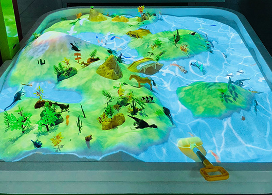 引进韩国最新VR/AR技术开发的一套智能沙盘游戏,该游戏是一款让玩家用手挖掘或堆积沙池里的沙子,Kinect识别沙子的地形变化后,使游戏的画面产生相应变化的触觉认知体感型游戏,它可以广泛应用与儿童教育平台、游乐场所、主题体验馆、广告媒体平台。