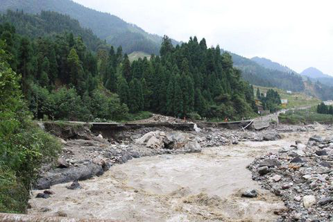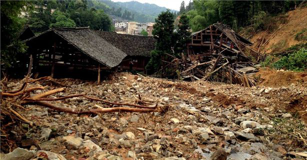 发生泥石流常常会冲毁公路铁路等交通设施甚至村镇等,造成巨大损失。