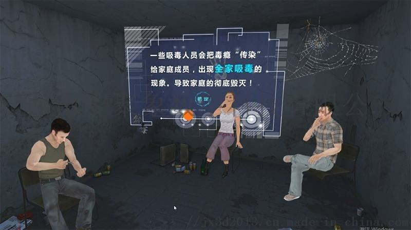 VR禁毒教育的主要目的是为了让体验者在VR设备上通过视觉、听觉、触觉感受到一定的刺激,模仿吸毒后的一些不良反应,令他们的潜意识里对毒品产生一种抵触心理。让人们真实地感受到毒品的快感和缺少毒品时的痛苦感。从而达到宣传拒绝毒品、珍爱生命的观念。