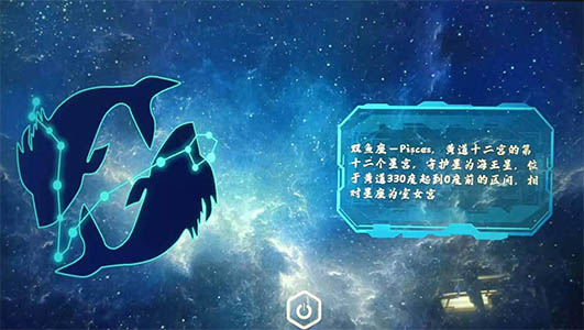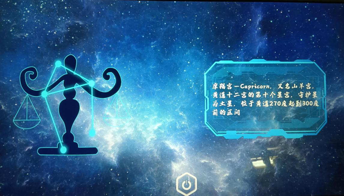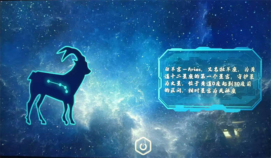 除关于十二星座(包含了白羊座、狮子座、魔羯座、双子座、处女座、天秤座、双鱼座、天蝎座、射手座、巨蟹座、金牛座、水瓶座)的具体介绍外,一体机还包含了十二星座的知识竞答。考验大家对于星座知识的掌握情况,让大家从形状、特点深入了解十二星座。