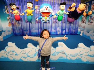 4、游乐场、儿童乐园等一些娱乐场所,小朋友也很喜欢和一些喜爱的动漫人物拍照,如:米奇老鼠、哆啦A梦等。用最简单的方式,为小朋友定格童年美好时光。